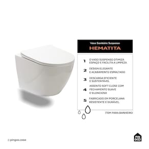 O Hematita é produzido em porcelana, garantindo durabilidade e resistência, enquanto o assento termofixo com sistema de amortecedor anti-ruído oferece um fechamento suave e silencioso soft close, elevando a experiência de conforto em cada uso.