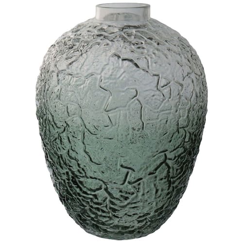 VASO Altura: 30,5 cm Largura: 21 cm Profundidade: 21 cm Peso: 1,89 Kg Diâmetro da Base: 11 cm Diâmetro do Topo: 6 cm Material: Vidro Cor: Fumê