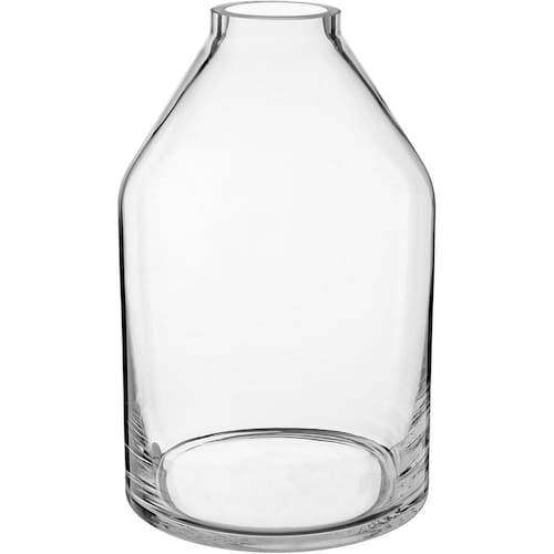 VASO Altura: 23 cm Largura: 14,7 cm Profundidade: 14,7 cm Espessura: ,6 cm Peso: 0,93 Kg Diâmetro da Base: 14,7 cm Diâmetro do Topo: 4,7 cm Material: Vidro Cor: Transparente