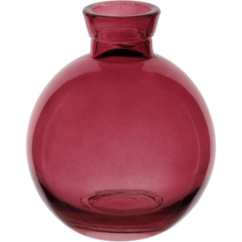 VASO Altura: 9 cm Largura: 7 cm Profundidade: 7 cm Espessura: ,3 cm Peso: 0,15 Kg Diâmetro da Base: 3,5 cm Diâmetro do Topo: 2,1 cm Material: Vidro Cor: Vinho