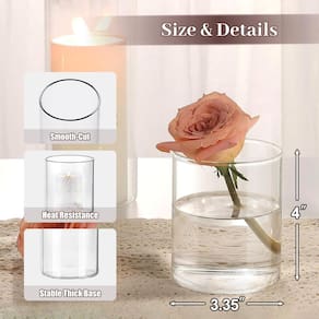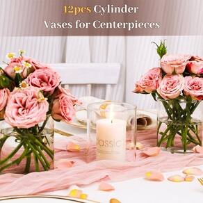 Conjunto de vasos de vidro com 24 peças - Especificações do produto: você receberá 12 pacotes de vasos de vidro transparente, o tamanho é 10 cm A x 8,6 cm L e nossos vasos cilíndricos são feitos de vidro de alta qualidade e um fundo estável para a peça central de mesa perfeita. - Design elegante e simples: estes vasos cilíndricos de vidro transparente oferecem excelente visibilidade, tornando-os a tela perfeita para exibir flores e decorações. Sua elegância simples complementa vários estilos de interiores e arranjos florais, tornando o arranjo de flores divertido e fácil, e eles parecem sofisticados mesmo sem flores. - Conjunto de vaso de vidro multifuncional: este conjunto de vasos de vidro para flores vai além de guardar flores, dobrando como decoração elegante para casa com seu design claro, adicionando requinte a qualquer cômodo. Eles também podem ser utilizados como castiçais ou recipientes para suculentas, seixos e areia, servem como adornos perfeitos para diversos ambientes. - Várias ocasiões: estes vasos cilíndricos funcionam perfeitamente como centros de mesa para deixar sua mesa de jantar mais bonita. Apesar de serem comuns, são uma decoração altamente eficaz para várias ocasiões, como restaurantes, jardins, casamentos e festas. - Embalagem resistente: os vasos cilíndricos transparentes são embalados em uma caixa forte e cobertos com uma embalagem de espuma de algodão de camada dupla para evitar quebra durante o envio. No caso improvável de você receber um vaso quebrado, nós o trocaremos por um novo ou reembolsaremos para você.