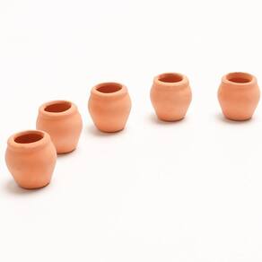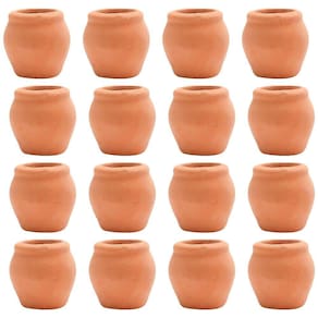 Feito em estilo de terracota, cada vaso de flores em miniatura pode ser preenchido com enfeites realistas, sujeira e flores artificiais.