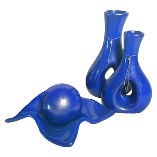 Jogo de vasos par furados e centro de mesa de sala decor - azul royal Jogo de vasos par furados e centro de mesa em cerâmica decor Jogo de vasos par de vasos furados e centro de mesa 1 premium em cerâmica decorativa de alta qualidade e durabilidade com acabamento diferenciado, inspirador e moderno. O produto em cerâmica é uma belíssima peça atemporal, sendo ótimo para entusiastas e profissionais da decoração, pois garante charme, elegância, modernidade e sofisticação. Repagine e decore a sua casa, cozinha, sala de jantar, sala de estar, aparadores e mesas em gerais, deixando-as com um clima agradável, alegre e descontraído, sendo também uma ótima opção de presente. Dimensões: - centro de mesa 1 : largura: 20 cm x diâmetro: 12 cm. - vaso furado médio: altura: 22 cm x largura: 15 cm. - vaso torcido: altura: 23 cm x largura: 7 cm. Características do produto: - par de vasos furados e centro de mesa em cerâmica de alta qualidade e durabilidade - pintura artesanal. - produzido por artesões profissionais seguindo um padrão de qualidade que atenda o gosto dos nossos clientes Cuidados: - recomendamos o uso de pano levemente umedecido para sua limpeza. do produto: - o produto é muito bem acomodado dentro da caixa, e super embalado para evitar quebras, ainda assim possuímos um sistema de e troca. Imagens meramente ilustrativas - produto artesanal, podendo variar de cor e/ou tonalidade