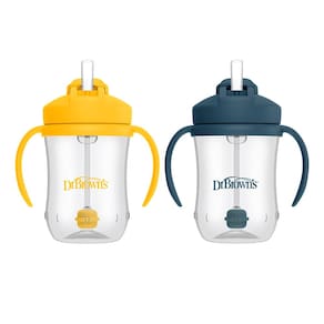 El primer vaso con pajilla para bebés Dr. Brown’s Milestones facilita la transición del biberón al vaso, ayudando a tu bebé a aprender nuevas habilidades para beber. - Vaso con pajilla ponderada con silicona suave que se mueve con el líquido, permitiendo que tu bebé pueda inclinar y beber en cualquier dirección. - Fácil de agarrar con mangos laterales pensados para manitas pequeñas. El vaso es contorneado y los mangos son removibles, adaptándose al crecimiento y habilidades del bebé. - Tapa corrediza a prueba de derrames y práctica para viajar, que guarda la pajilla cuando no se utiliza para mayor higiene y comodidad. - Fabricado con materiales duraderos que resisten caídas, golpes y uso diario. - Marcas de medición para saber cuánto ha bebido el bebé. - Fácil de limpiar: todas las piezas son removibles, aptas para lavavajillas (bandeja superior) y esterilizador. Incluye cepillo de alambre para limpiar el interior de la pajilla. No debe usarse en microondas. - Libre de BPA. Recomendado para bebés de más de 6 meses.