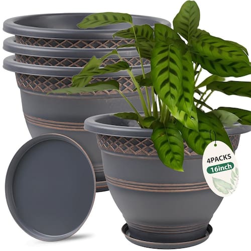 Vasos para plantas Usocik, pacote com 4, 40 cm de plástico com orifícios de drenagem