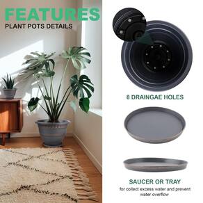 vasos de plantas de plástico resistente para ambientes internos e externos, vasos de flores - Decore seu pátio e casa – As plantas são muito especiais para as pessoas, elas podem curar nossa mente e coração, cultivar algumas plantas para obter um pouco de felicidade e adicionar um pouco de atmosfera natural à sua casa. - Vasos de flores de qualidade premium – os vasos de plástico são feitos de plástico PP premium que são resistentes, leves, não desbotam e racham com o tempo, ótimos para suas plantas crescerem. - Orifício de drenagem e pires – Existem 8 orifícios de drenagem na parte inferior de nossos vasos de jardim, que podem controlar o excesso de água, aumentar a capacidade de respiração e beneficiar o crescimento das plantas; o pires leve pode não apenas coletar o excesso de água, mas também manter seu chão ou mesa limpos. - Design retrô – padrão xadrez na parte superior do vaso de plantas, aparência clássica de vaso de plantas parece simples e elegante. Ideal para jardim, mesas, sala de estar e peitoril da janela. Ótimo presente para o dia das mães, dia dos pais, aniversário, Natal também. - Multiuso: nossos vasos internos vêm em vários tamanhos, adequados para plantas internas e externas, plantando várias plantas, como orquídeas, cobras, hortelã, ervas, cactos e aloe.