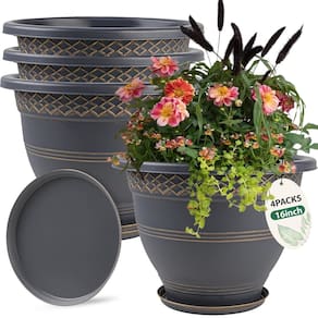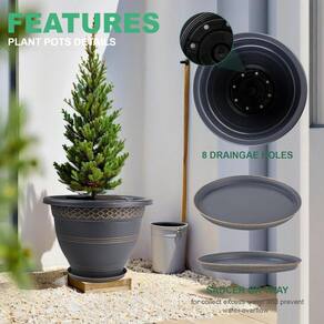 vasos de plantas de plástico resistente para ambientes internos e externos, vasos de flores - Decore seu pátio e casa – As plantas são muito especiais para as pessoas, elas podem curar nossa mente e coração, cultivar algumas plantas para obter um pouco de felicidade e adicionar um pouco de atmosfera natural à sua casa. - Vasos de flores de qualidade premium – os vasos de plástico são feitos de plástico PP premium que são resistentes, leves, não desbotam e racham com o tempo, ótimos para suas plantas crescerem. - Orifício de drenagem e pires – Existem 8 orifícios de drenagem na parte inferior de nossos vasos de jardim, que podem controlar o excesso de água, aumentar a capacidade de respiração e beneficiar o crescimento das plantas; o pires leve pode não apenas coletar o excesso de água, mas também manter seu chão ou mesa limpos. - Design retrô – padrão xadrez na parte superior do vaso de plantas, aparência clássica de vaso de plantas parece simples e elegante. Ideal para jardim, mesas, sala de estar e peitoril da janela. Ótimo presente para o dia das mães, dia dos pais, aniversário, Natal também. - Multiuso: nossos vasos internos vêm em vários tamanhos, adequados para plantas internas e externas, plantando várias plantas, como orquídeas, cobras, hortelã, ervas, cactos e aloe.