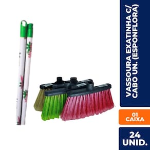 Especificações técnicas: Produto: Vassoura com cabo Modelo: Exatinha Marca: Esponflora Cerdas: Sintéticas macias Indicação: Pisos internos e delicados Uso: Doméstico e leve Cor: Variada (conforme disponibilidade)