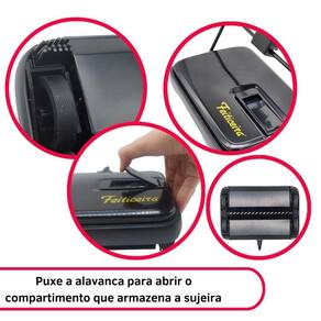 Vassoura Feiticeira Varredoura Nova Agora existe um jeito rápido e moderno para limpar pisos e carpetes de maneira eficiente, silenciosa e pratica. Conheça a revolucionária Vassoura Feiticeira Compact 1 Escova Mágica Modo de uso: Rosquear os cabos e encaixar na vassoura, feito isso, deslizar a mesma pelo piso para frente e para trás, após o uso, abrir o compartimento e despejar a sujeira no lixo. Marca: Feiticeira. Cor: Preto. Conteúdo da Embalagem: 1 vassoura + cabo desmontado. Peso líq. Aproximado do produto kg : 1,3 kg. do Fornecedor: 1 Ano. Defeitos de Fabricação, não cabendo a desgaste ou mau uso. Dimensões aproximadas do produto: Comprimento: 28cm. Altura: 7cm. Largura: 24cm. Marca: Não Informado