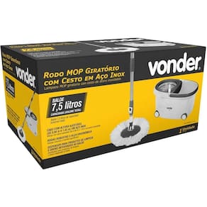Código Fornecedor: 6358700000Marca: Vonder Conteúdo da embalagem:1 Rodo MOP giratório com cesto em inox. Acompanha: 1 dispenser de 30 ml e 1 refil em microfibra.Destaques e diferenciais:Possui cesto em aço inox e cabo com altura ajustável também em aço inox, além de rodas robustas e alça ergonômica, oferecendo uma fácil movimentação e transporte.Aplicações e dicas de uso:Indicado para limpeza em pisos, tais como cerâmica, madeira, porcelanato, sintético, entre outros.Detalhes TécnicosMaterial do cabo: Aço inox Comprimento do cabo para vassoura: de 0,90 m a 1,45 m Material da base: Plástico PP Material do cesto: Aço inox Dimensões da base do rodo: 25 cm de diâmetro Capacidade do balde: 7,5 litros Capacidade do dispenser: 30 ml Dimensões C x L x A : 465 mm x 280 mm x 240 mm Massa aproximada peso kg : 2,5 kg - E CDC : legal: 90 dias Marca: Não Informado