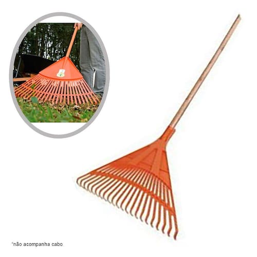 A vassoura para grama é uma ferramenta essencial para a manutenção da sua área verde. Ela serve para juntar folhas, grama aparada, galhos, dentre outros objetos que estejam no chão, mantendo a beleza e limpeza do seu jardim. Este modelo possui um super ângulo de abertura para recolher objetos de diversos tamanhos. Este modelo possui 22 dentes e não acompanha cabo.