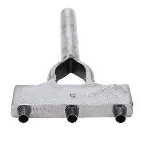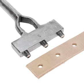 Vazador Manual Bronc-Stell modelo pente, possui 3 pinos para furos no couro com diâmetro de aproximadamente 5mm e distância de aproximadamente 2cm, fabricada em aço temperado de alta resistência, é utilizada com o auxílio de um martelo.