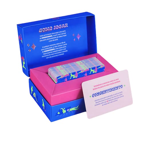 Com 69 cartas, o jogo propõe combinações entre perguntas instigantes (VERDADE) e comandos interativos (AÇÃO), além de 4 cartas de CONSENTIMENTO, promovendo uma experiência divertida com segurança e respeito mútuo.