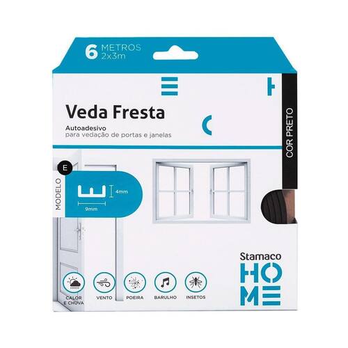 A Borracha Vedação Preto Veda Fresta Adesiva Rolo 6M Modelo E da Stamaco é o produto ideal para vedar batentes de portas e janelas de forma prática e eficiente. Com 6 metros de comprimento, divididos em duas fitas de 3 metros cada, essa fita autoadesiva é perfeita para uso doméstico ou em escritórios.