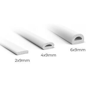 Com 2mm de espessura, 9mm de largura e 6 metros de comprimento, bloqueia a passagem de ar, poeira, insetos e umidade, contribuindo para um ambiente mais limpo e protegido. A cor branca proporciona acabamento discreto e compatível com móveis claros ou modernos.