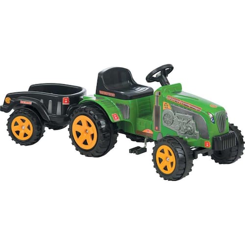 Com o Trator Fazendeiro Biemme Brinquedos a Pedal com Caçamba - Verde - o pequeno pode se sentir um verdadeiro morador do campo. Ele tem design muito realista com imitação de motor nas laterais. Estrutura em plástico injetado. Acompanha manual de mo ntagem e adesivo. Rodas traseiras sopradas com faixas de borrachas. Tração a Pedal por sistema de corrente. Volante com som.Faixa etária: Acima de 2 anos. Capacidade: até 35 kg.