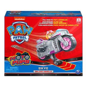 Paw Patrol, Moto Pups Skye's Deluxe Pull Back Motorcycle Vehicle com recurso Wheelie e boneco de brinquedo - PULL BACK TO POP WHEELIES: Pop wheelies com o veículo de luxo da Skye! Puxe a motocicleta para trás e observe-a ir – o veículo corre para frente, entrando em um wheelie enquanto acelera para o resgate! - Boneco colecionável do céu: usando sua jaqueta e capacete Moto Pups, Skye está pronta para o resgate em sua motocicleta de luxo! Um clipe embutido mantém sua figura no lugar durante o jogo. - Brincadeira imaginativa: use sua imaginação para criar suas próprias aventuras de animais Moto Pups de alta velocidade com veículos de luxo Chase, Marshall, Rubble, Skye, Rocky, Zuma e Wildcat (vendidos separadamente)! - O veículo de luxo Moto Pups Skye da Patrulha Canina é o presente perfeito para crianças a partir de 3 anos. Não é necessário pilhas. Compatível com o Moto HQ Playset (vendido separadamente). - Inclui: 1 boneco Skye, 1 veículo de luxo Moto Pups Skye - Coberto pelo compromisso Spin Master Care. Veja abaixo os detalhes completos