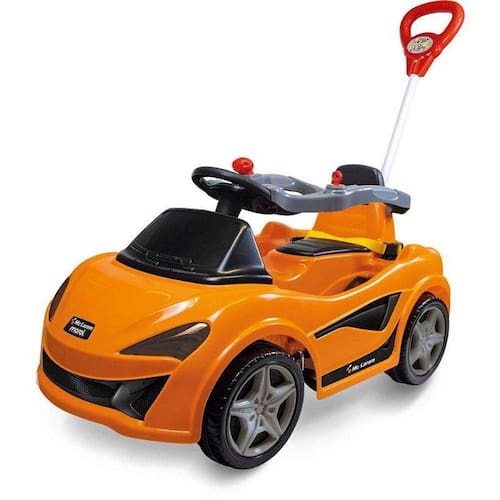 Para a criancada apaixonada por velocidadeA MC-LARAM e um lindo e veloz conversivel, seu visual e esportivo e cores vibrantes.Torne-se um verdadeiro piloto e se divirta dirigindo por todo lugar.Possui duas funcoes: Passeio e Pedal.Funcao Passeio, o adulto tem controle na direcao do carrinho, as rodas dianteiras viram para os lados.Funcao Pedal, retirando a haste guia, os apoios de pes e o anel de protecao, a crianca pode pedalar e brincar sozinha.Diversao seguraVem com cinto de seguranca.Pedal com eixo de aco.Tracao com sistema de corrente de bicicleta.A buzina tem som divertidoRodas com borracha para dar mais aderencia ao chao e nao patinar.A haste da guia e metalica, e de facil remocao. Possui um gancho para pendurar uma boEmbalagem: UNIDADEReferência: 3155Homologação Inmetro: CE-BRI/ICEPEX-I 02573-39-6