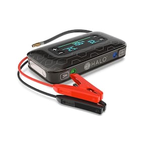 Halo Bolt Air+ 1750 Motor de arranque portátil com compressor de ar, banco de potência, holofote com visor digital carrega vários dispositivos, preto - HALO Bolt Air+ 1750: Chega de baterias de carro mortas ou pneus furados. Dê partida no seu veículo, encha seus pneus e carregue dispositivos alimentados por USB. Tem um holofote integrado, para que você esteja melhor preparado para emergências na estrada e quedas de energia - Início de um empurrão: alimentado com 600 amperes e 1750 amplificadores de pico, você pode iniciar com confiança qualquer bateria de carro, SUV, caminhão ou marinha de 12 volts e é adequado para motores a gasolina de 6L e 3L a diesel. A tecnologia inteligente é incorporada diretamente no design à prova de erros, de modo que os cabos jumper incluídos são à prova de faísca, mantendo você seguro com o que há de mais moderno em bateria inteligente e proteção de carregamento patenteada. O guia de início de salto em 3 etapas é convenientemente impresso diretamente na bolsa de armazenamento de microfibra - Carregamento multidispositivo: possui uma porta USB-C bidirecional que permite recarga rápida, uma porta USB-A e um compressor de ar de 130 PSI. O Bolt Air+ 1750 também funciona como um carregador portátil para recarregar dispositivos alimentados por USB - Voltímetro integrado e holofote integrado: a tela digital colorida extragrande aprimorada é 3,5x o tamanho dos modelos Bolt anteriores. Mostra a tensão, status de carregamento, nível percentual, temperatura alta-baixa e indicador de aviso - Uma linha completa de soluções de carregamento e energia: A HALO fornece a energia que você precisa para tranquilidade com uma linha completa de energia portátil, carregamento rápido sem fio, partida de carro e soluções de energia definitivas
