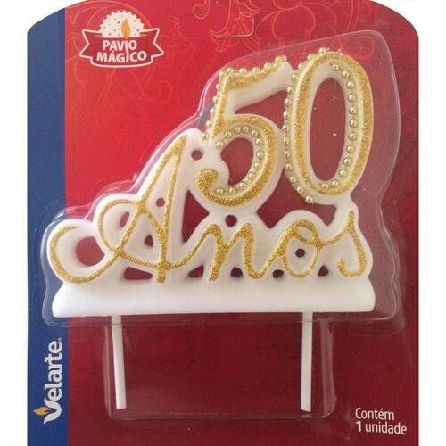 Vela 50 anos luxo branca e dourada velarte toda comemoração é especial, mas determinadas datas são únicas. Desta forma, a velarte criou uma linha cheia de glamour e rica em detalhes, valorizando ainda mais este momento. Comemore bodas e aniversários de um jeito inesquecível Composição: vela em 2d de parafina bicolor, aplicações de glitter e adornos, palitos especiais para fixar no bolo, pavio mágico e sistema de segurança contra propagação de chama. Fabricado em parafina, fio de algodão. Cor e modelo conforme foto Não reutilizável após o uso. Selo de segurança do inmetro Detalhes em glitter.