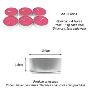 Cada vela: Ø4cm x 1,5cm - ~11g.