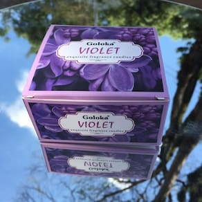 Vela Aromática Lata Indiana Goloka Vegano - Escolha o Aroma Cor: Violeta 70 gr Vela Aromática Lata Indiana Goloka Vegano - Escolha o Aroma