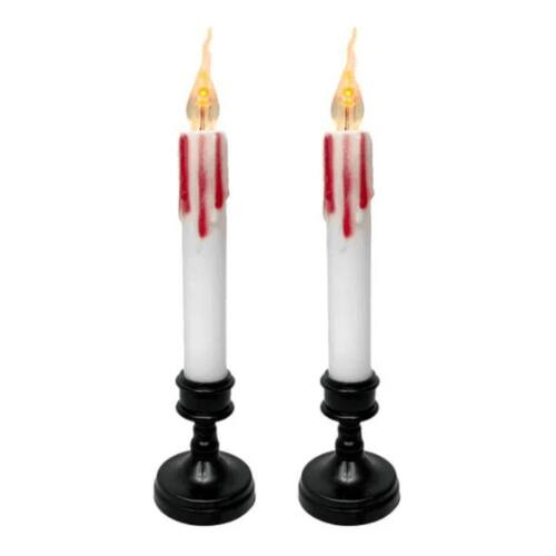 Jogo castiçal de vela com sangue LED, perfeito para decoração da sua festa, deixando mais assustadora e arrepiante.