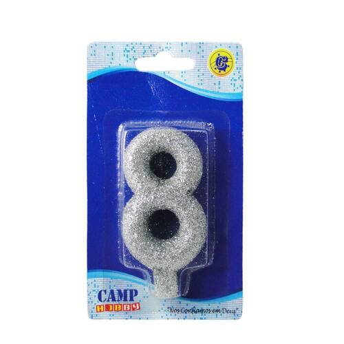 Informações adicionais: Validade: indeterminada Tamanho aproximado da vela: 7cm Tamanho aproximado da embalagem: a:13xl:7,5cm Peso aproximado: 20g Tipo de produto: vela de aniversario numero 8 glitter na cartela Cor: prata Composição: parafina Marca: Não Informado Ean: 7454384269981