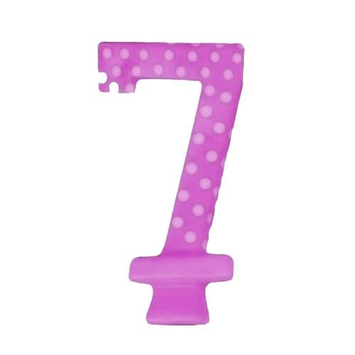 Vela de Aniversário Lilás com Branco N7 - Extra FestasVela de Aniversário Poá Lilás N7 é feita de parafina, com cores fortes, perfeita para deixar sua decoração e seu bolo ainda mais bonito e divertido! Contando com o formato do número 7, a vela ainda apaga e acende!