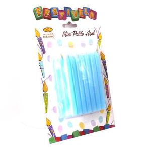 Vela Mini Palito Azul Composição: Parafina, fio de algodão e pigmentos atóxicos Embalagem com 24 unidades Cor: Azul Medidas: Altura: 6cm Diâmetro: 5mm por defeito de fabricação Marca: Não Informado Ean: 7898601240610