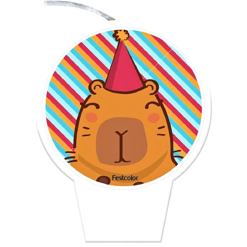 Descrição do produto : " Deixe o momento do parabéns ainda mais especial com a vela temática de Capivara da Festcolor! Com design plano e ilustração divertida, essa vela é perfeita para quem ama a simpatia desse animal tipicamente brasileiro — símbolo de calmaria e bom humor. Fabricada com materiais de qualidade, a vela garante queima segura e duradoura, ideal para decorar o topo do bolo e render fotos incríveis. Uma ótima escolha para festas infantis, temáticas ou para quem quer um toque criativo e fora do comum na celebração. : "
