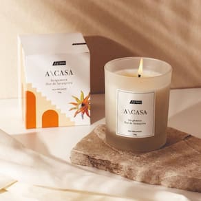 A Vela Perfumada A\CASA possui aroma de Bergamota e Flor de Laranjeira de 190g com superfície incolor e formato arredondado. Conta com tecnologia exclusiva para propagar o aroma com maior duração e alcance da essência no ambiente.