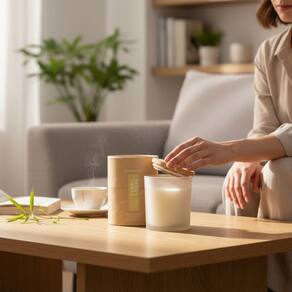 A vela aromatizador é feita com ingredientes de alta qualidade, incluindo cera vegetal, pavio de madeira e essência de perfumaria fina. Nesta versão com 150g, a vela libera o perfume de bambu de forma contínua e delicada mesmo se estiver apagada, envolvendo o ambiente com seu aroma único.