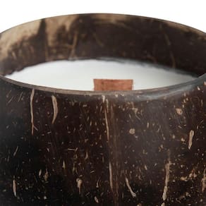 Com leve aroma de coco e aspecto rústico a vela cria uma iluminação suave enquanto perfuma suavemente o ambiente.