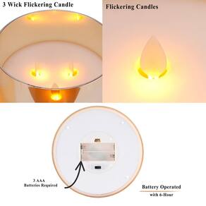 JHY DESIGN - [Efeito de vela realista] - Estas velas de pilar sem chama com pavio de 3 movimentos, luz laranja quente refletida na parede externa de vidro dourado decoram perfeitamente a sala em um estilo moderno, criando uma atmosfera acolhedora e confortável. - Características do produto: vela extragrande: 15 cm (diâmetro) x 15 cm (altura); 3 velas cintilantes de LED são feitas de cera marfim e são alimentadas por 2 pilhas AA (não incluídas). - [Função de temporizador] - para operação fácil e conveniente. Você pode definir um temporizador de desligamento automático de 6 horas. A vela tem um interruptor liga/desliga com um temporizador de 6 horas. Se você ativar o modo temporizador no tempo necessário, a vela permanecerá acesa por 6 horas, desligará e acenderá por 18 horas e, em seguida, acenderá novamente no mesmo horário todos os dias. Velas LED fáceis de entender para crianças e idosos. - [Chamas de LED dançantes realistas] - Esta vela LED sem chama tem um pavio de 3 movimentos, o pavio oscila ligeiramente com o fluxo de ar, a chama suave que pisca reproduz a luz como uma chama real. Emite cores quentes e suaves no escuro, criando uma atmosfera romântica e confortável. Ideal para Natal, igreja, restaurantes, mesa de jantar, hotéis, casamentos, aniversários, decoração de aniversários. - [Atendimento ao cliente dedicado] - Este produto vem com atendimento ao cliente vitalício - Se o produto que você recebeu estiver danificado ou com defeito, . Processaremos seu pedido imediatamente e enviaremos uma substituição ou reembolso. Se você encontrar algum problema com nossos produtos, , responderemos em 24 horas.