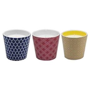 Destaques: Behältergröße: 1800 mlWirkstoff: CitronellaölVerschiedene Farben (blau, rot oder hellbraun). Citronella-Kerze in einem bemalten Terrakotta-Topf mit geometrischem Design. Ideal für Terrassen, Höfe oder Veranstaltungen im Freien. Bequem und einfach im Garten zu bewegen oder zu verpacken und mitzunehmen