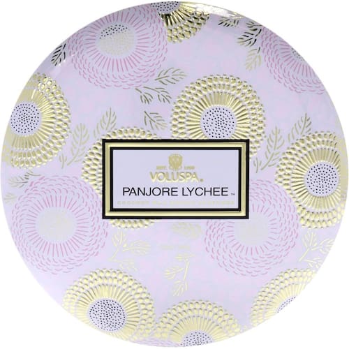 Experimente a atmosfera luxuosa criada pela Vela Voluspa Panjore Lychee com 3 pavios em lata. Esta vela lindamente elaborada apresenta uma mistura única de cera de coco que queima de forma limpa e uniforme, permitindo que você desfrute de sua fragrância vibrante por até 40 horas. O design com três pavios potencializa a dispersão do aroma, preenchendo seu ambiente com uma fragrância suave e refrescante.