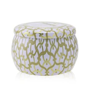 Uma vela pequena e perfumada apresenta uma mistura exclusiva de cera de coco e mechas 100% is Ilumina qualquer ambiente com uma fragrância suave e encantadora. Armazenada em uma linda lata de metal adornada em tons ricos Inclui uma tampa que protege a vela da poeira e é perfeita para lembranças quando ela termina de queimar. O tempo de queima é de aproximadamente 25 horas Dimensões: 2,99 “P x 1,93" H Servida à mão nos EUA. Livre de ftalatos, parabenos, sulfatos e testes em animais Cuidado: Queime em uma superfície resistente ao calor. Não deixe cair corpos estranhos ou aparas de pavio na vela. Queime em uma área aberta, longe de correntes de ar. Mantenha a vela acesa à vista. Mantenha fora do alcance de crianças e animais de estimação