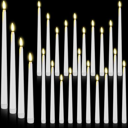 Especificações: Material: plástico Cor: branco Altura: 21,6 cm, 24,5 cm, 27,5 cm, 32,5 cm A embalagem inclui: 24 peças, seis de cada um dos quatro tamanhos. Cada um tem cerca de 2 cm de diâmetro. Características: Disponível em vários tamanhos, as velas cônicas de LED são seguras para evitar a ocorrência de ignição por chamas e também podem servir como uma vela de igreja para desencadear uma atmosfera forte Método de uso: Abra a tampa da bateria e instale o tipo apropriado de bateria. Observação: A cor pode existir uma pequena diferença devido a diferentes telas. A vida útil da bateria está relacionada à frequência e duração de uso do produto. Se a frequência de uso for alta e o uso único for longo, a vida útil da bateria será relativamente curta. - Pacote valioso: cada pacote contém 24 velas operadas por bateria, com seis de cada quatro tamanhos, isso garante que você tenha o tamanho certo para qualquer configuração - Variedade de tamanhos: o conjunto de velas cônicas sem chama vem em quatro tamanhos diferentes: 21,6 cm, 24,5 cm, 27,5 cm e 32,5 cm para atender às necessidades variadas dos clientes; esses tamanhos melhoram ainda mais a beleza dessas velas, tornando-as para mais eventos e ocasiões - Fácil de usar: este interruptor na parte inferior é um interruptor rotativo para abrir a tampa da bateria e colocar 2 pilhas AAA na vela (sem baterias), economizando tempo e esforço - Características seguras e versáteis: evite o risco de ignição com nossas velas afuniladas de LED; além de serem seguras, essas velas cintilantes realistas também servem como uma boa vela de igreja - ampla variedade de usos: a vela de cone sem chama é adequada para jantar, festa, casamento, aniversário, decoração de casa de Natal, aparência de vela cônica e luz amarela quente para criar uma atmosfera romântica, também pode ser aplicada como uma vela de igreja, decoração de janela de Halloween, presentes de Natal, luz noturna