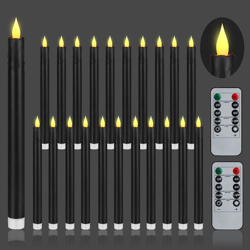 - O pacote inclui 24 velas cônicas sem chama de 10,6 polegadas (cada uma com 0,78” de diâmetro), 2 controles remotos e um manual de operação. Cada vela cônica operada por bateria é testada minuciosamente e rigorosamente por baterias 2AA antes da venda. As baterias NÃO estão incluídas neste produto