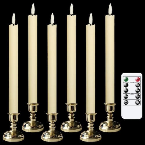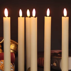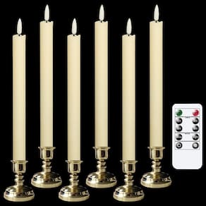 Especificações da vela de janela sem chama: Material: cera real com luz LED Altura da vela: 24,4 cm Diâmetro da vela: 2 cm Cor da vela: marfim Cor da luz: luz quente Fonte de luz: lâmpada led 3D Ocasião: Amplamente utilizado como jantar, igreja, casamento, festa temática, aniversário, decoração de mesa de janela de casa de Natal de Ação de Graças Funciona com pilhas: Cada vela cônica elétrica requer 2 pilhas AAA (não incluídas). Informações da embalagem: 6 velas cônicas sem chama marfim com temporizador. 1 manual do utilizador (idioma português não garantido). Temporizador de 6 horas: Ao ligar as velas de janela de LED, elas acenderão por 6 horas e desligam automaticamente por 18 horas, pedalam todos os dias. Por exemplo, se você definir o temporizador às 17:00, as velas sem chama acenderão por 6 horas e desligarão automaticamente às 23:00. O temporizador irá alternar a cada 24 horas. Mais dicas: Não tente acender estas velas decorativas falsas. Remova as pilhas se não planeja usar com frequência. Serviço de apoio ao cliente: Se você tiver algum problema, sinta-se à vontade para entrar em contato com nosso atendimento ao cliente e faremos o nosso melhor para ajudá-lo. Obrigado por nos escolher! - 💖Velas sem chamas: Todas as velas cônicas de bateria de 6 peças são feitas de cera real com LED cintilante, 2 cm de diâmetro com 24,5 cm de altura, serve principalmente para castiçais afunilados. - 💖Remoto e temporizador: controle remoto de 10 teclas para controlar todas as 6 velas elétricas, você pode definir as velas em um temporizador de 2/4/6/8 horas, mudar o modo de cintilação, ajustar o brilho. O controle remoto só funciona quando você liga todas as velas no interruptor inferior primeiro - 💖Funciona por bateria: cada vela cônica LED sem chama requer 2 pilhas AAA (não incluídas), uso de 2 baterias de alta qualidade que fornecerão mais de 300 horas de ambiente contínuo - 💖EXCELENTE PROJETO: Todas as velas de bateria com um pavio 3D preto real com uma ponta de chama, LED cintilante, amplamente aplicado à decoração de casa de férias de Natal Halloween outono/inverno - 💖NOSSO SERVIÇO: Nós nos esforçamos para oferecer a você uma experiência de compra sem preocupações. sempre que tiver dúvidas, soluções satisfatórias serão fornecidas. Peça agora e dê uma nova decoração à sua doce casa.
