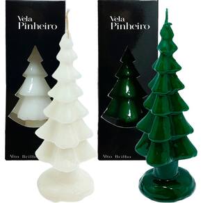Velas Decoração Pinheiro Natalino Verde Branco 20cm Kit 2pçs -