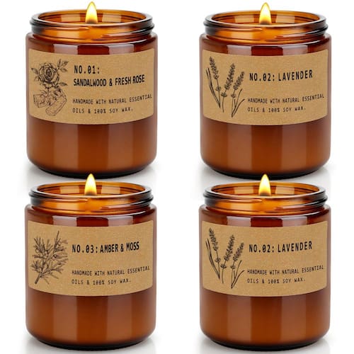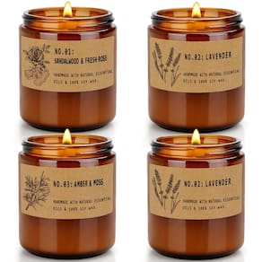 - Melhor companheiro: o conjunto de velas perfumadas vem em recipientes de vidro âmbar minimalistas e permite que você incorpore um toque natural à sua decoração. Um design portátil cuidadoso facilita o transporte e a reutilização. Cada vela contém 201 g de cera de soja e pode durar pelo menos 50 horas de queima.