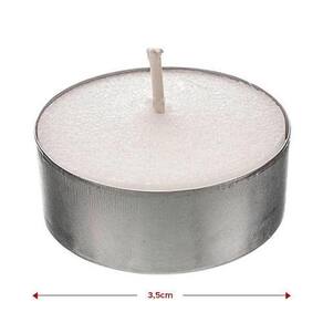 O Kit contém 100 velas flutuantes, cada uma com medidas de 3,5cm de largura por 1cm de altura. Os vasinhos são feitos em alumínio, proporcionando durabilidade e resistência.