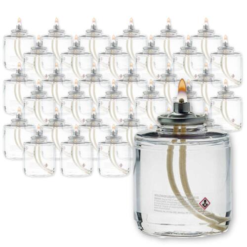 Hollowick Velas líquidas descartáveis, 50 horas, para uso em suportes de lâmpada votiva de vidro, luzes de mesa de casamento de restaurante, fechamentos resistentes a crianças, 36 peças, óleo combustível transparente HD50-36 - Longo tempo de queima; ideal para iluminação ambiente ou ambiente em aplicações de mesa com pouca luz; custa apenas centavos por hora para queimar - Mais seguro do que velas de cera sólida porque eliminam o risco de quebra por choque térmico associado a recipientes de vela de vidro - Limpe a luz de velas sem bagunça de velas; o melhor combustível de lâmpada de cera líquida disponível; queima mais limpo do que velas de cera sólida; não mancha e sem bagunça de cera derretida. Não deixa fuligem preta em suas lâmpadas - A maneira mais conveniente de operar suas lâmpadas e é preferida pela maioria dos usuários hoje; economize mão de obra simplesmente descarte as células de combustível vazias com as novas; nenhuma outra manutenção ou ajustes necessários - Não rotulado para uso doméstico ou decoração de casa; apenas uso comercial e de restaurante; rotulagem especial e fechos resistentes a crianças necessários