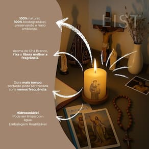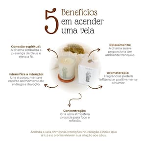 No verso de cada vela, você encontra uma oração do santo, que fortalece sua conexão espiritual. Além disso, cada vela acompanha uma medalha com a imagem do santo escolhido, tornando-a um presente especial e significativo.