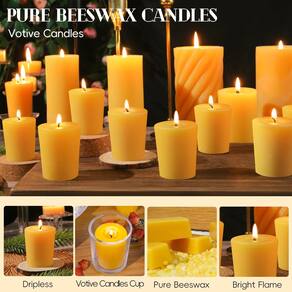 - Longo tempo de queima: você receberá 24 velas votivas de cera de abelha, uma grande quantidade pode atender às suas diferentes necessidades de uso. Cada vela de cera de abelha mede 3,3* 4,1* 5 cm/1,3* 1,6* 1,97 polegadas e queima por cerca de 13 a 14 horas. A cera de abelha pura tem um alto ponto de fusão e a chama lenta e constante fornece muita luz. O corte adequado do pavio ajuda a queimar uniformemente e durar mais tempo, adequado para orações na igreja, etc.