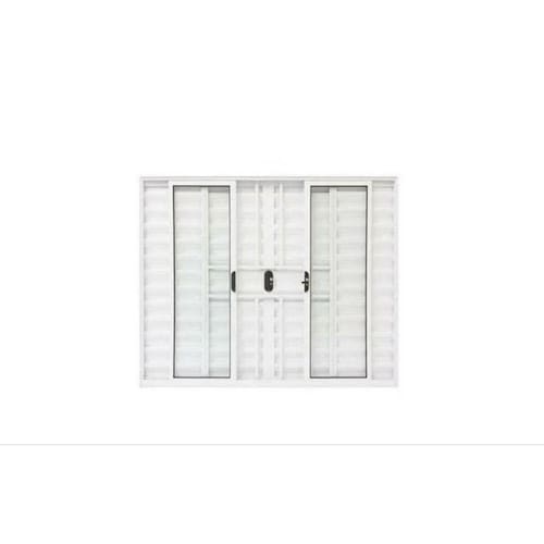 Veneziana 100x120 6 Folhas c/Grade – Alumínio Branco – Linha 18 Modular Janela do tipo Veneziana com 2 folhas COM GRADE veneziana fixas e 2 folhas veneziana móveis (de correr) + 2 folhas de vidro móveis (de correr). Fecho central. Já vem com vidro incluso e pronta para instalar. Não enferruja. De fabricação própria.
