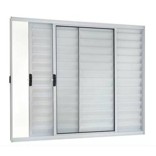 Veneziana 100x150 3 Folhas – Alumínio Branco – Linha 18 Modular Janela do tipo Veneziana com 1 folha veneziana fixa e 1 folha veneziana móvel (de correr) + 1 folha de vidro móvel (de correr). Fecho na lateral. Já vem com vidro incluso e pronta para instalar. Não enferruja. De fabricação própria.