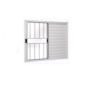 Veneziana 120x120 3 Folhas c/Grade – Alumínio Branco – Linha 18 Modular Janela do tipo Veneziana COM GRADE com 1 folha veneziana fixa e 1 folha veneziana móvel (de correr) + 1 folha de vidro móvel (de correr). Fecho na lateral. Já vem com vidro incluso e pronta para instalar. Não enferruja. De fabricação própria.